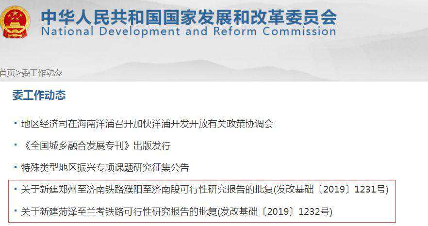 7月22日,国家发改委网站公布了对山东、河南间的两条新建高速铁路的批复。