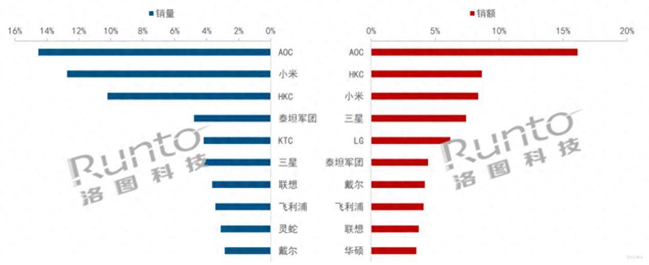 2023年显示器线上市场销量与销额-洛图科技统计