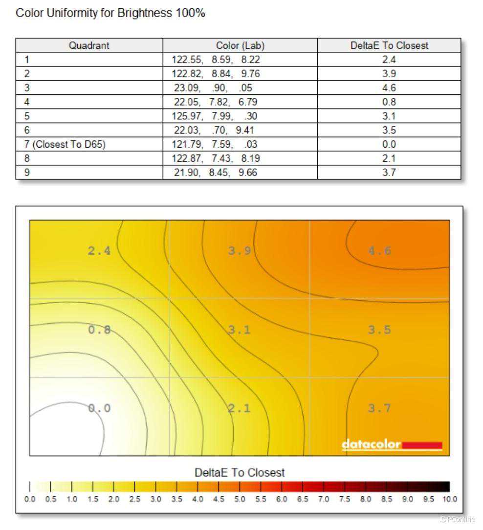 但HVA面板也不是十全十美,在面板均匀度方面,可能就稍微逊色一些,在亮度均匀性上,在100%测试亮度的情况下,VG253KM的面板四周都会出现超过10%的亮度差异,最大差值为16%,差距在30尼特左右,这个差距虽然可以被一些敏感的用户所察觉,但在日常使用中由于屏幕不是一直处于高光或者黑暗的情况,实际效果仍然可以接受。