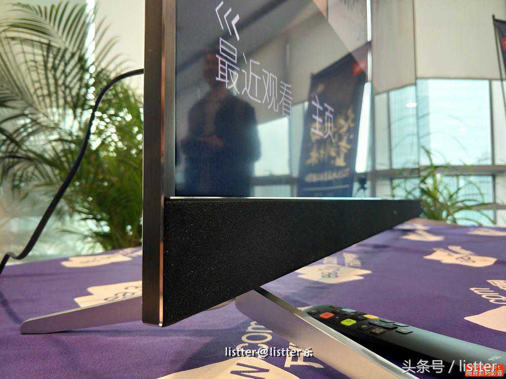 从这个角度可以看到全金属边框,也是非常薄的,让65英寸电视看起来并不是十分占用有限的客厅空间资源。