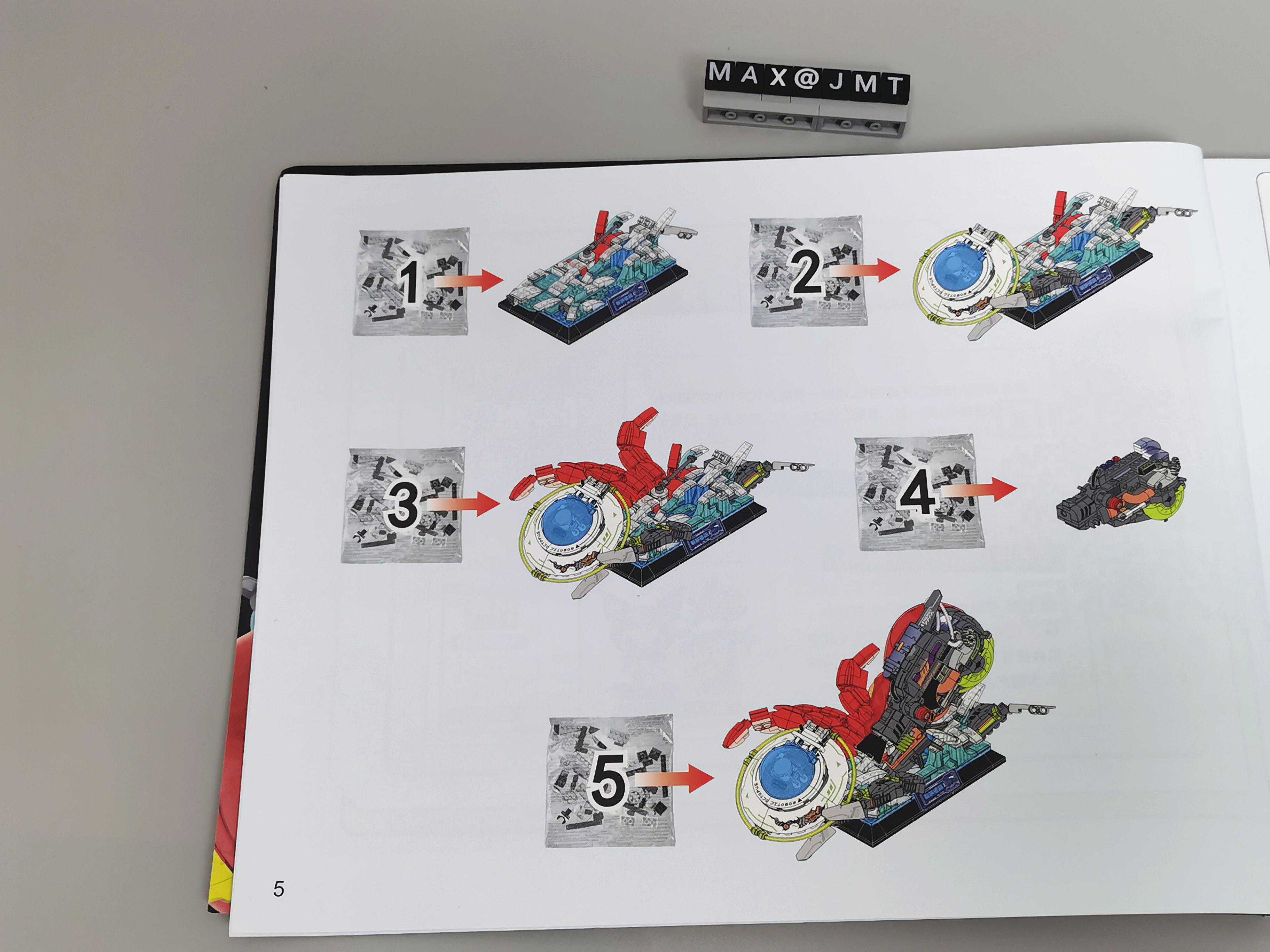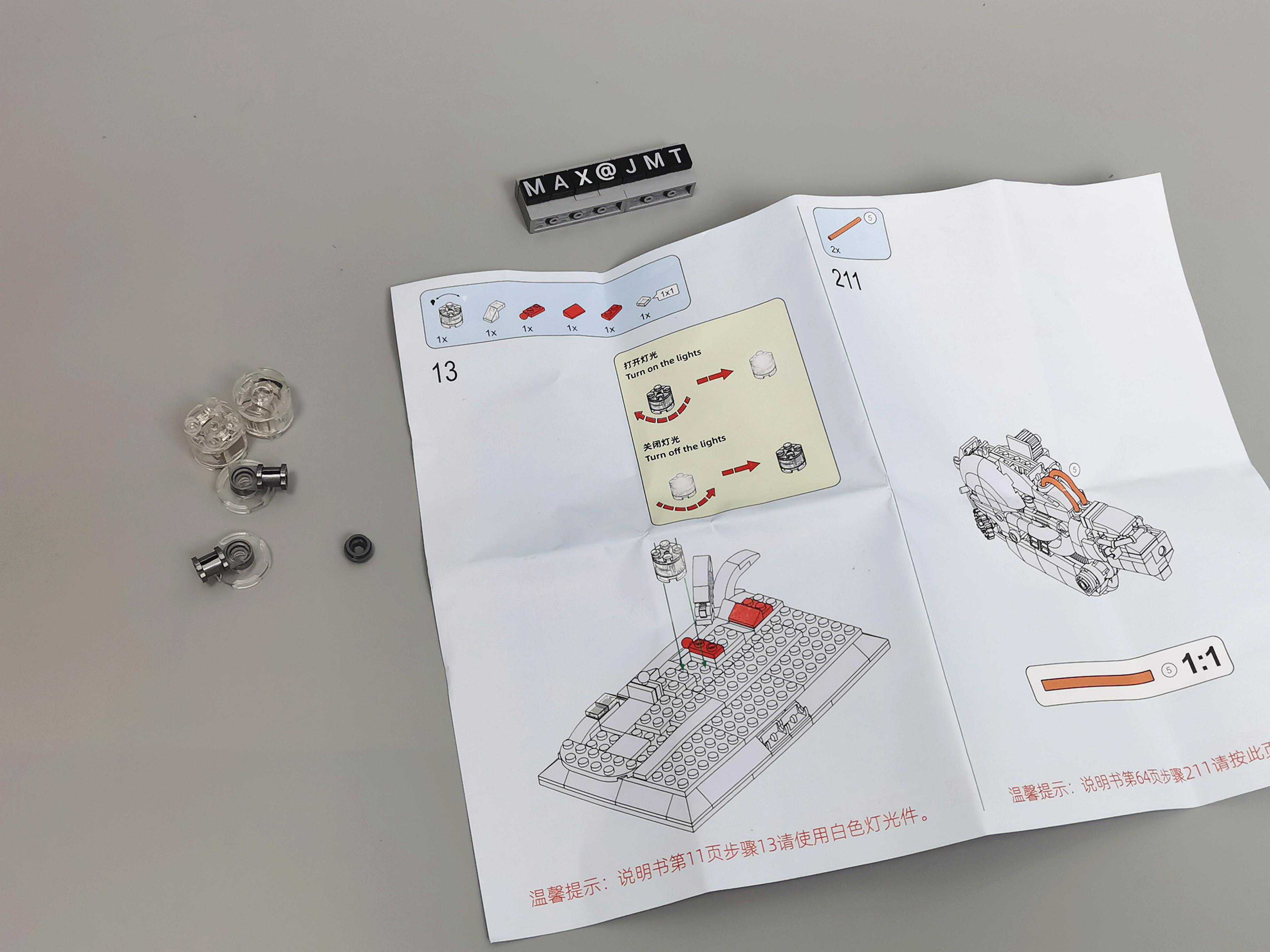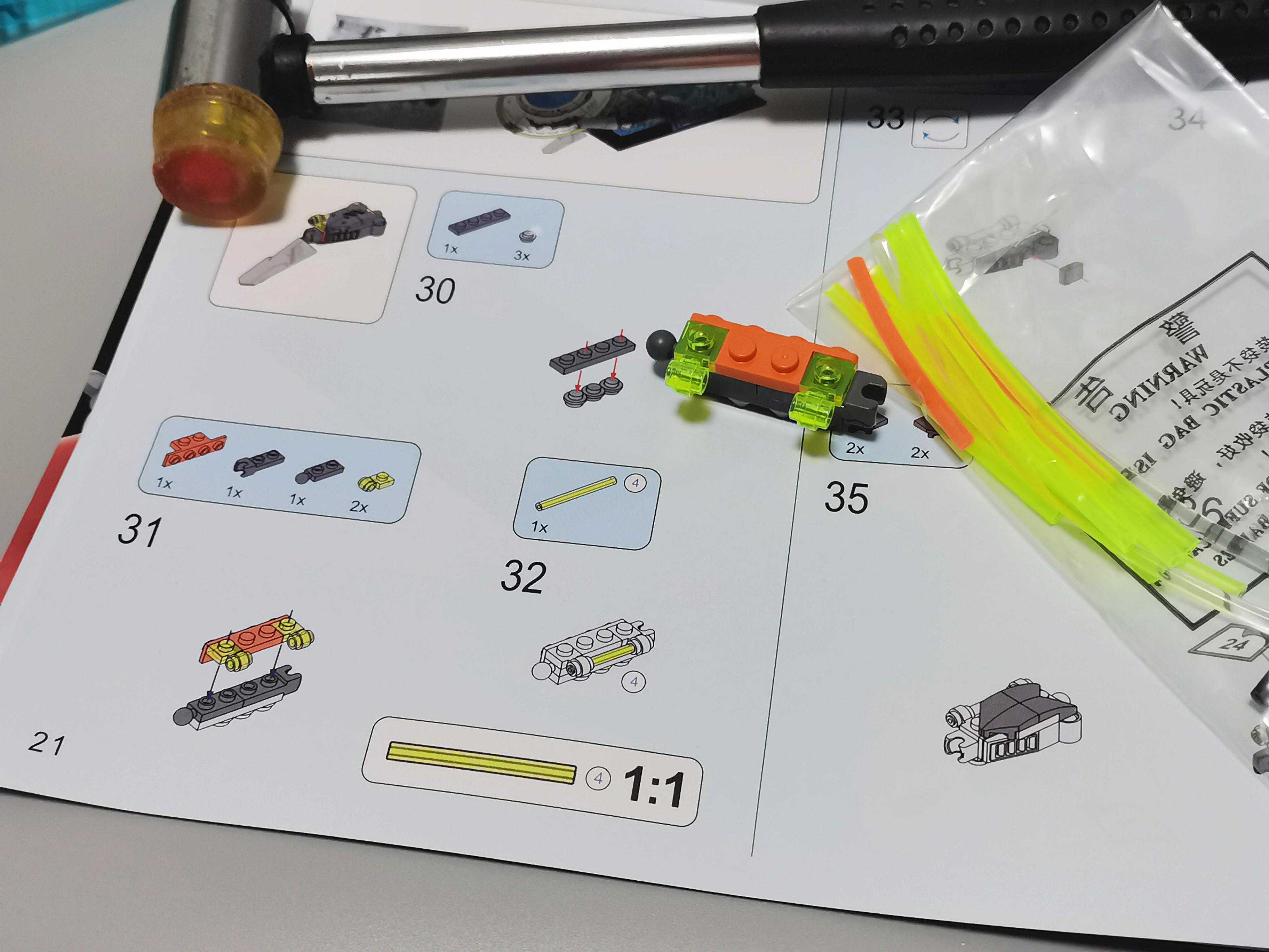 32步,需要的荧光绿色软管,在通用包内。飞碟用了大量的贴纸来还原外观,盖子的开合位咬合力不足,开合盖时会容易掉。