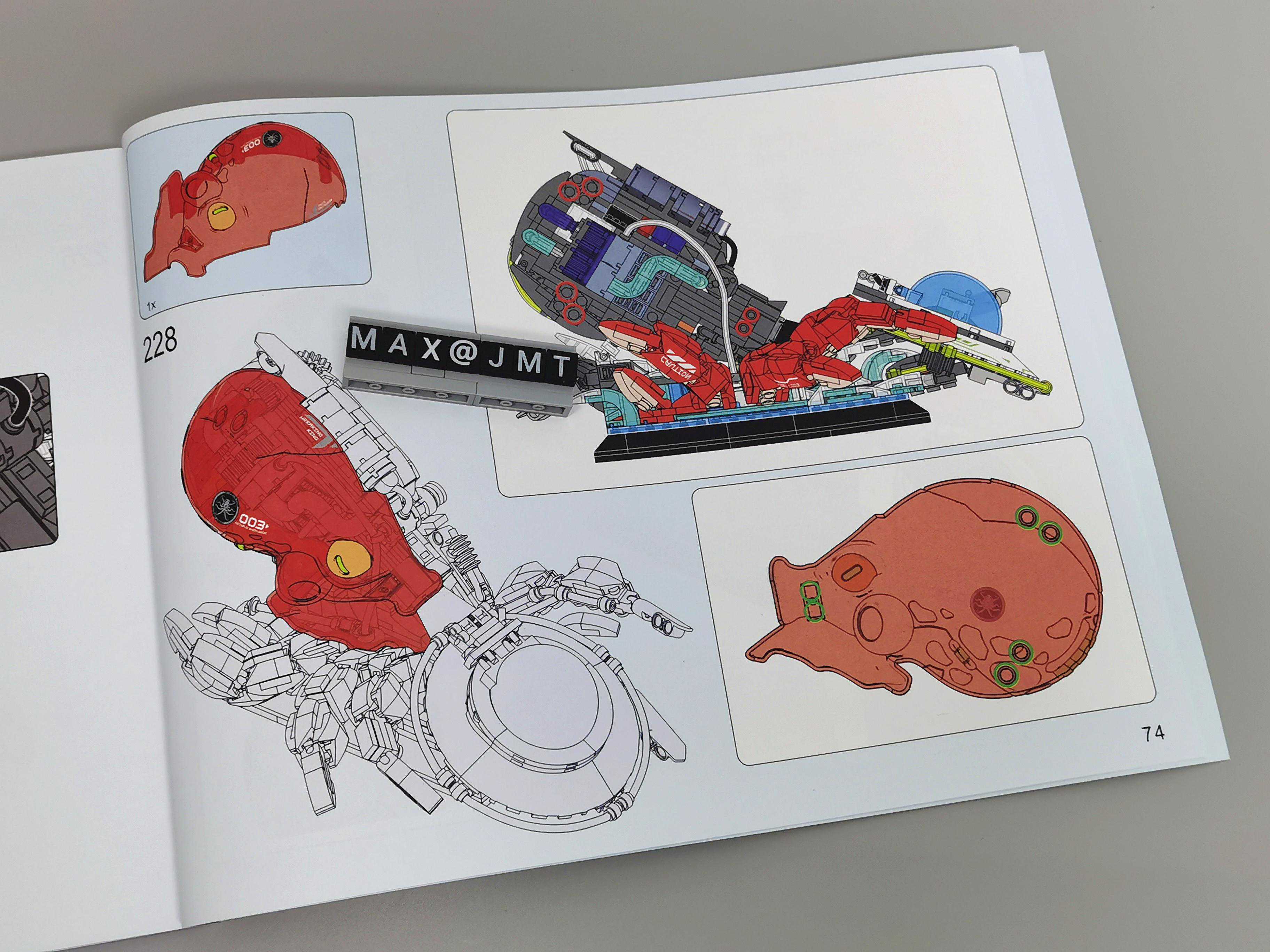 ▼里面5个步骤都有完成效果,步骤完成后以灰阶处理。说明书拼装教程共计74页,228步完成。全采用高德斯零件+开模外观零件。
