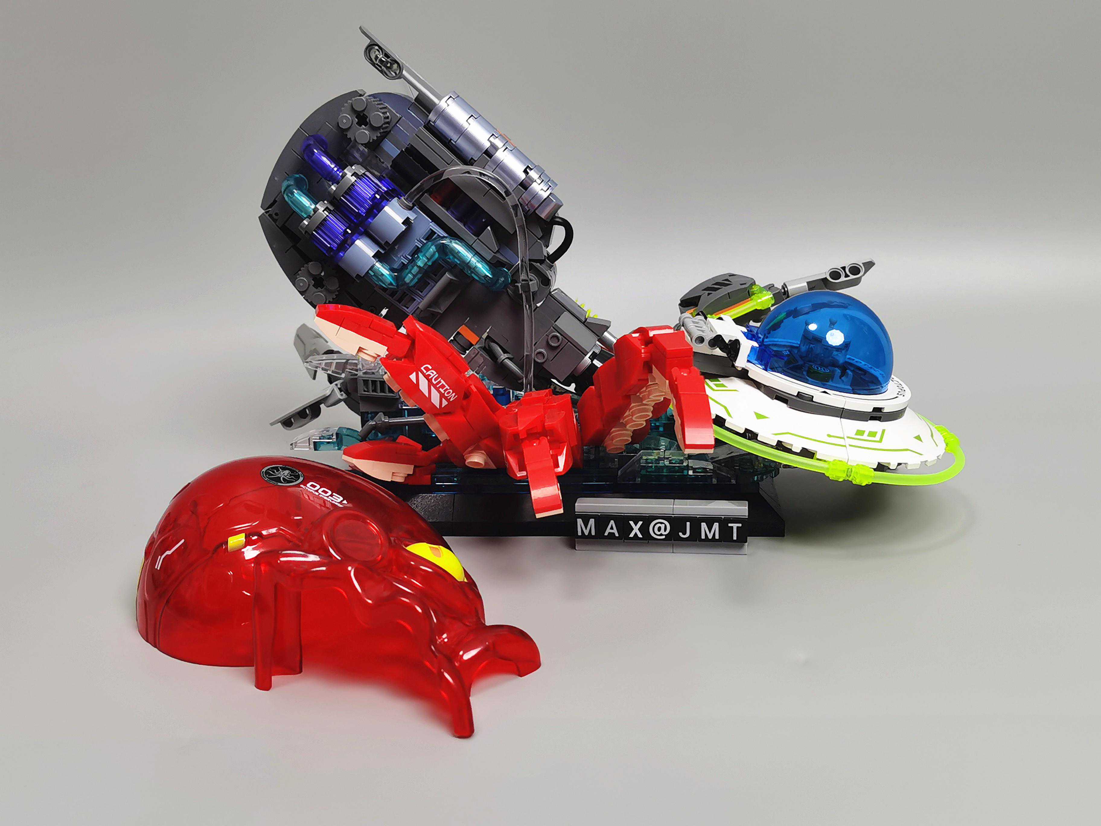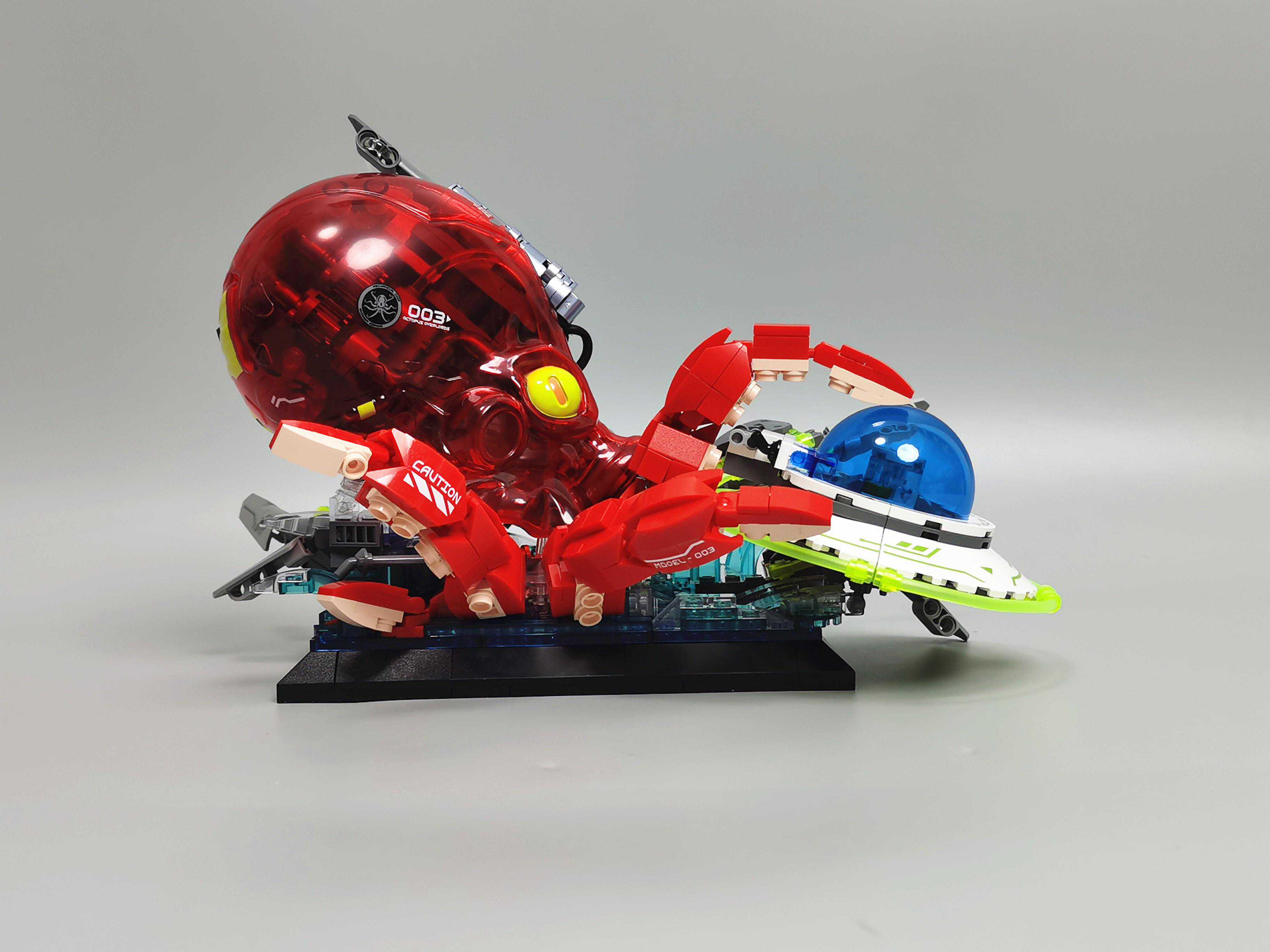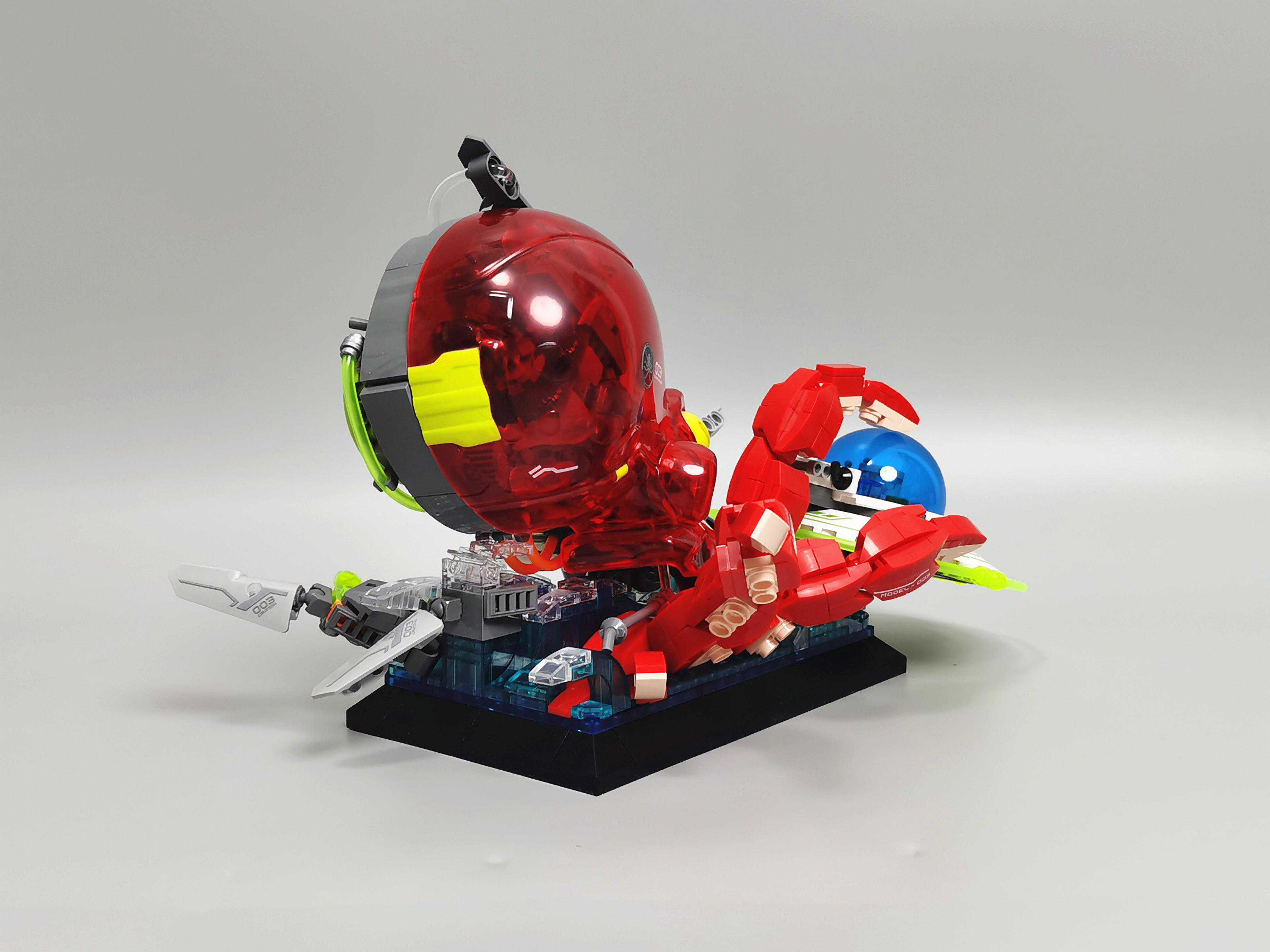 ▼飞船周边用了荧光绿软管,视觉上有科技感。章鱼的吸盘用了肉色的零件,很还原。