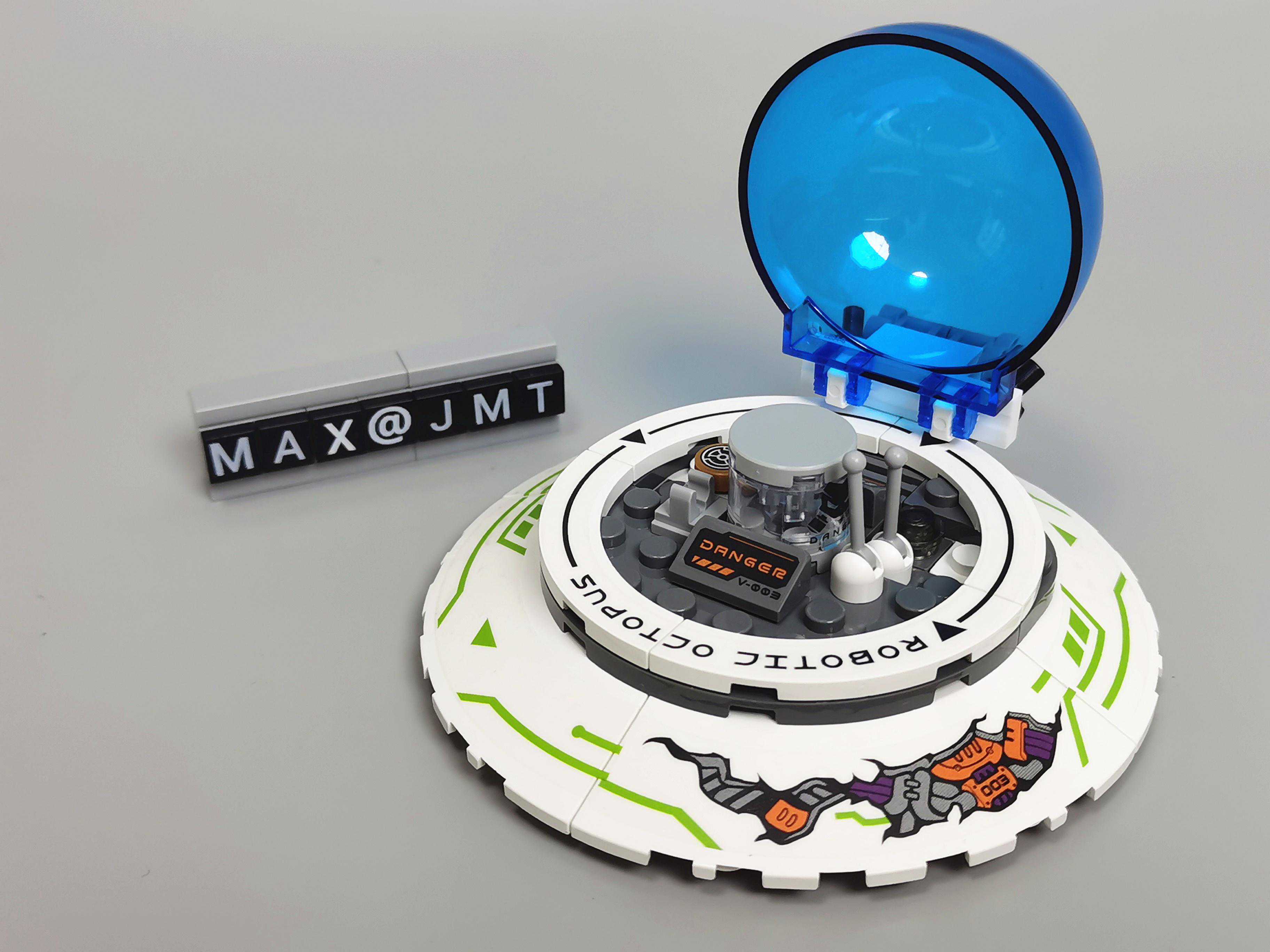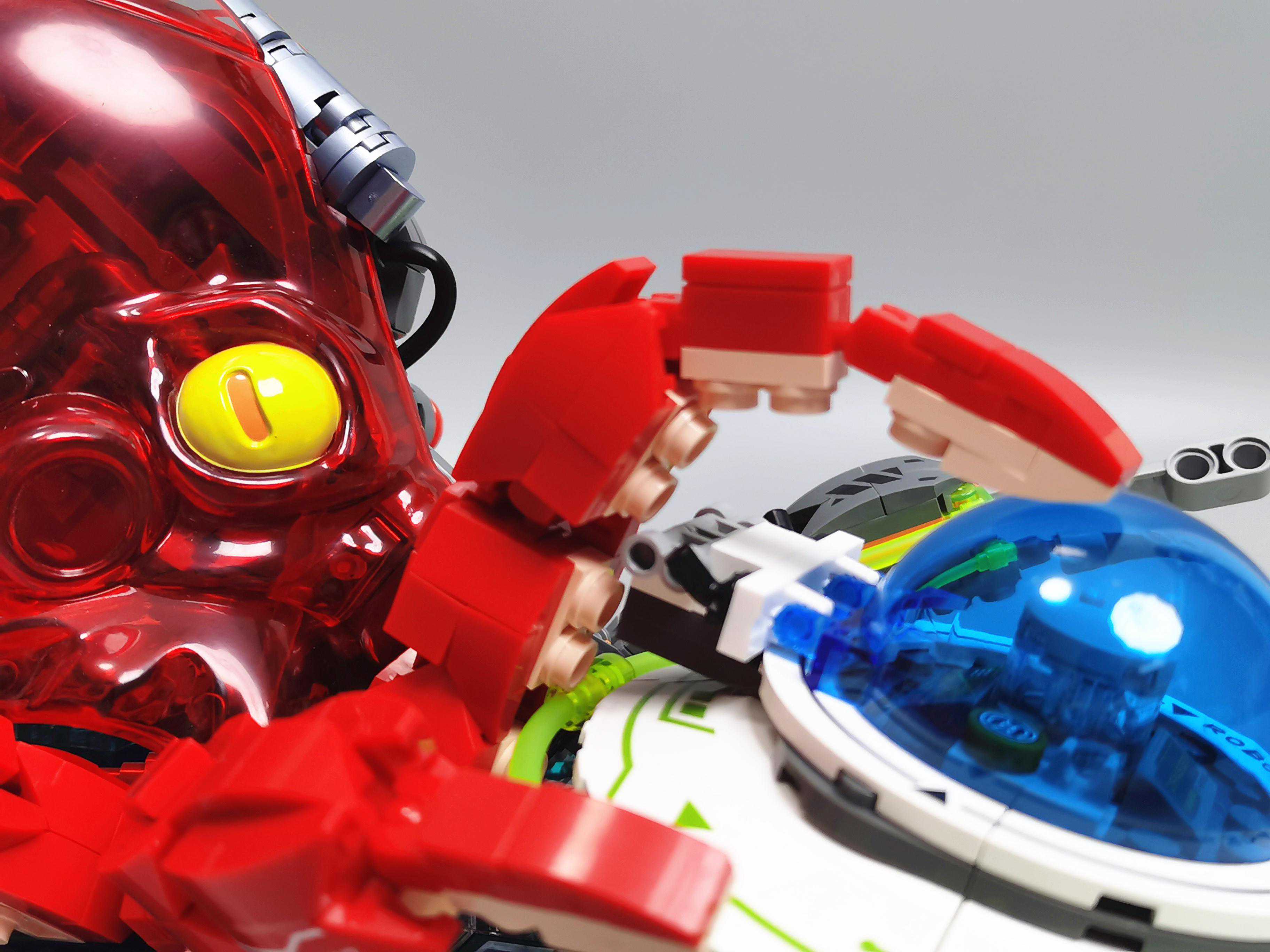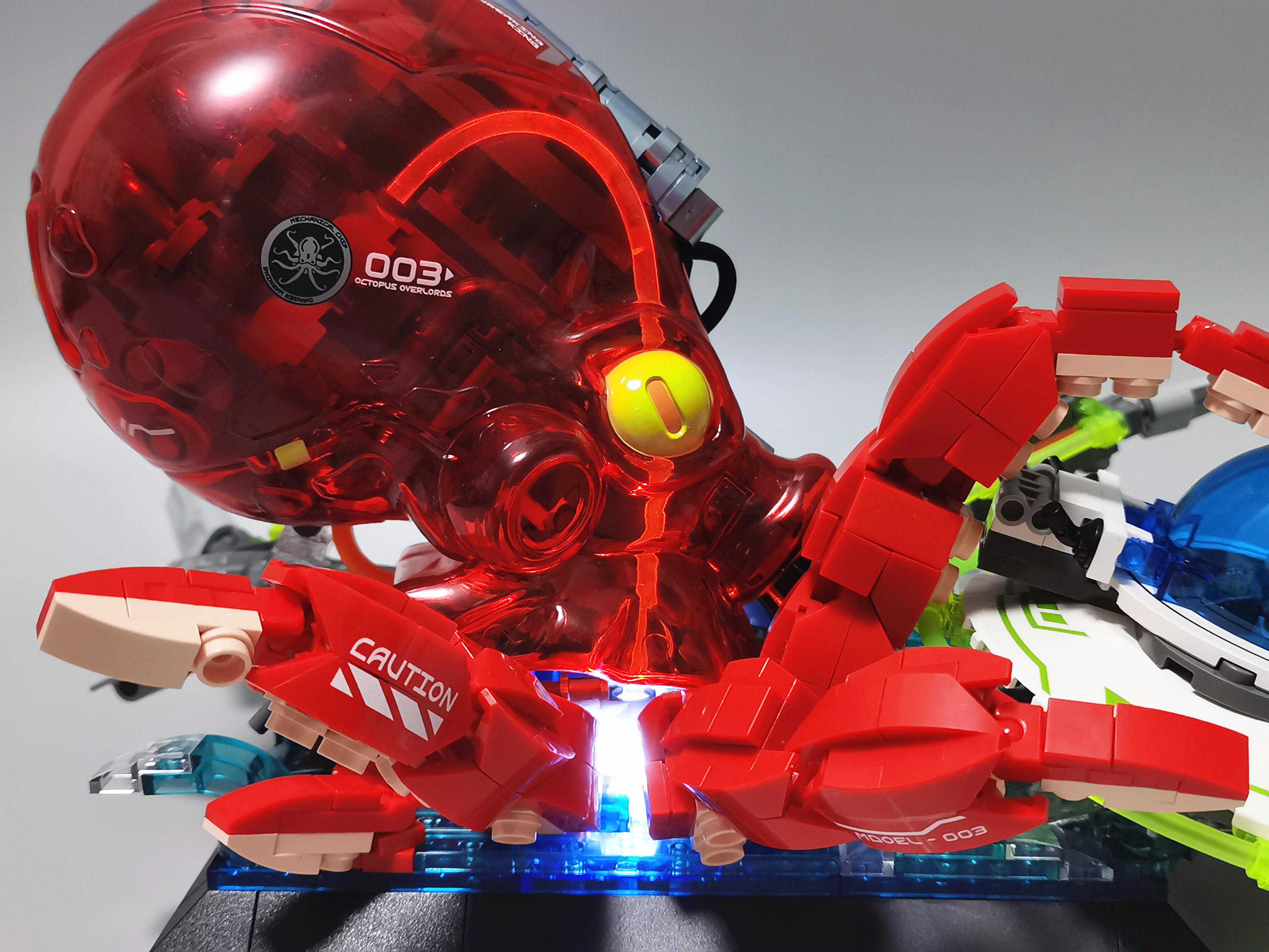 ▼飞船周边用了荧光绿软管,视觉上有科技感。章鱼的吸盘用了肉色的零件,很还原。