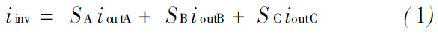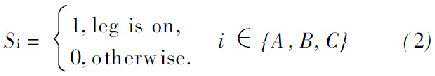 式中,SA,SB和SC是交换功能的交换机顶端的三个逆变器的开关,如下: