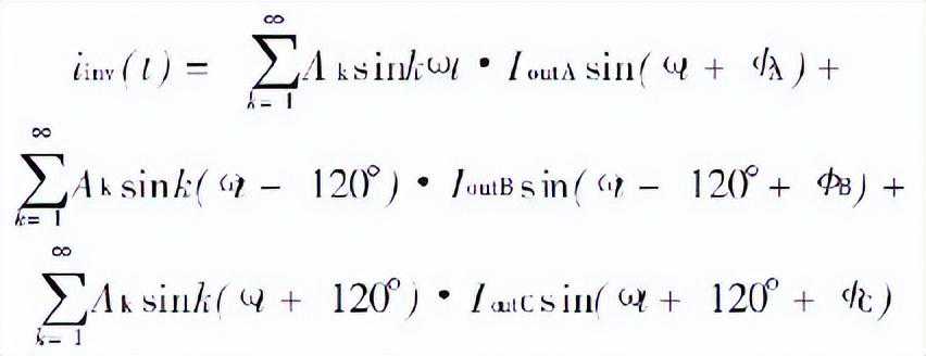 式中,Iinv0是直流分量的逆变器输入电流;Iinvn是n阶部分的电流。通过公式(4)可看到,IoutA=IoutB=IoutC和ΦA=ΦB=ΦC,同时有Iinvn=0,如果n0三相负载电流是平衡的。否则,交流成分存在会造成连锁反应……