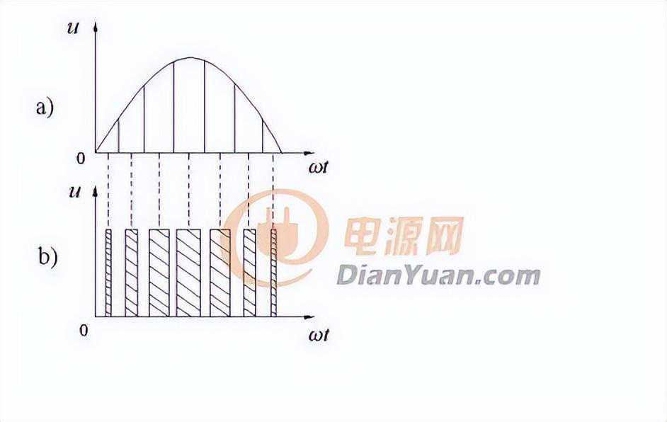 在正弦波和三角波的自然交点时刻控制功率开关器件的通断,称为自然采样法。正弦波在不同相位角时值不同,因而与三角波相交所得到的脉冲宽度不同。可知这种算法计算量比较大,需花费较多的时间,因而难以在微处理器中实现……