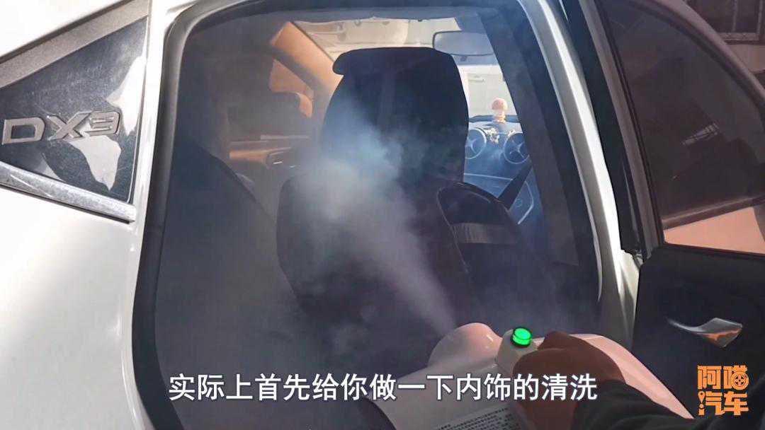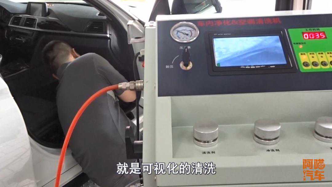 实际上首先做一下内饰的清洗,然后把空调系统的这个空调滤芯换一下,然后把风道里面灰尘给吹一吹。然后就来了个很重要的项目,就是空调的清洁保养消毒。实际上就是用了一台臭氧发动器,把车窗降下一点,然后再通过鼓......
