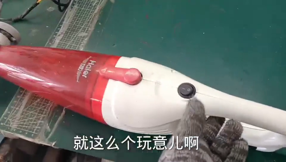 开始维修。拆开了,这个是线的问题,线的插头有问题所以不用换新线了,换个插头就可以了。这个吸尘器修好了,这个其实就是小型的,现在充电试一下,这是开关,就这么个玩意在地上就是这么用的。