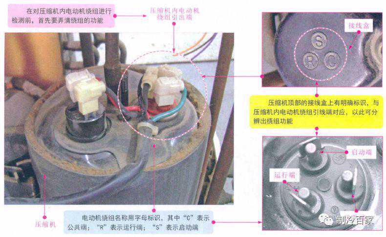 电气故障则是指由压缩机内电动机异常引起的故障,可通过检测压缩机内电动机绕组的阻值来判断。