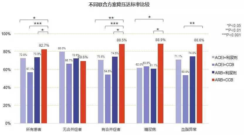 图2.众多联合方案中,ARB+CCB联合治疗的降压达标率最高