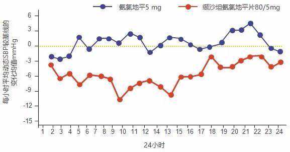图6.缬沙坦氨氯地平有效控制患者24小时血压,显著优于氨氯地平单药治疗