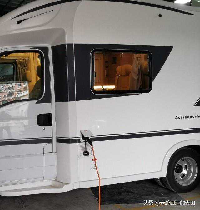车身左侧设有市电接口,值得一提的是市电接口为一个与新能源汽车一致的五口插孔,所以可用新能源220V慢充充电枪,在高速公路服务区、加油站、国家电网/南方电网公共充电桩等地方都能随时接入市电用电无忧,但是笔者不建议长时间占用公共充电桩。