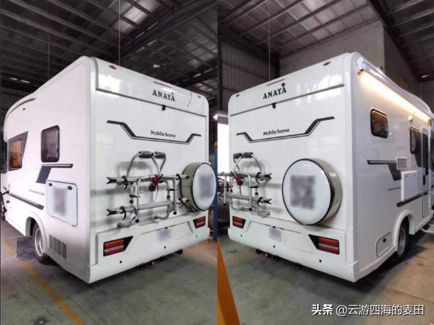 车身左侧尾部则是一个1500*700*600(mm)的大型储物仓,可存放出门远行的大部分物资,随车维修工具以及警示三角架也放在了这里,由于竖床布局影响储物仓非左右贯通。重点是全车舱门和加水口以及乘客门共用一把钥匙,解决了房车用户一大痛点问题——一台车一大串钥匙。