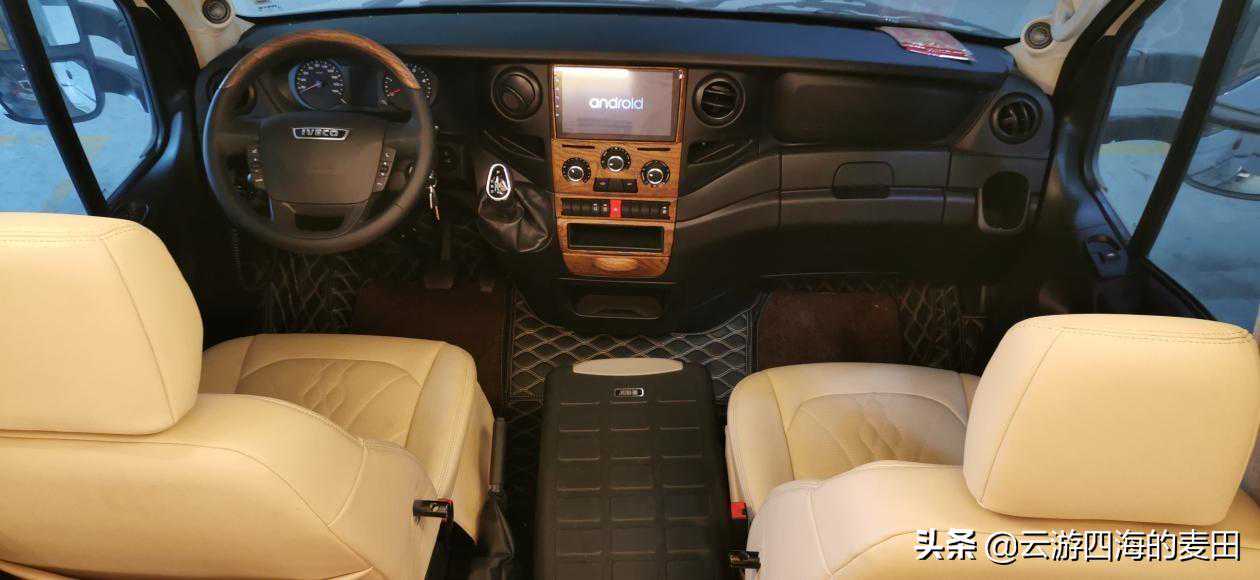 笔者带大家看一款出自广东工匠之手的杰作,基于NEVCO欧胜C45--33房车专用底盘(2.0版)打造的2020款天空之子无拓展小额头自行C型房车,动力方面搭载一台四缸高压共轨柴油涡轮增压发动机,可以输出最大马力145马力3500转/分,最大功率107kw/HP,输出最大扭矩370Nm@1400--2800转/分,与之相匹配的是ZF8HP70(HI--MATIC)自动变速箱,头挡速比为4.71,最高挡位为0.67,多挡位使得扭矩输出的更加均匀,超速挡则能让车辆高速行驶的同时保证经济性,AT变速箱换挡平顺性非常好,使得车辆在提速过程中没有太大的换挡顿挫感。