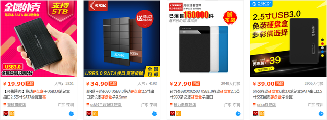 淘宝是移动硬盘盒的首选阵地