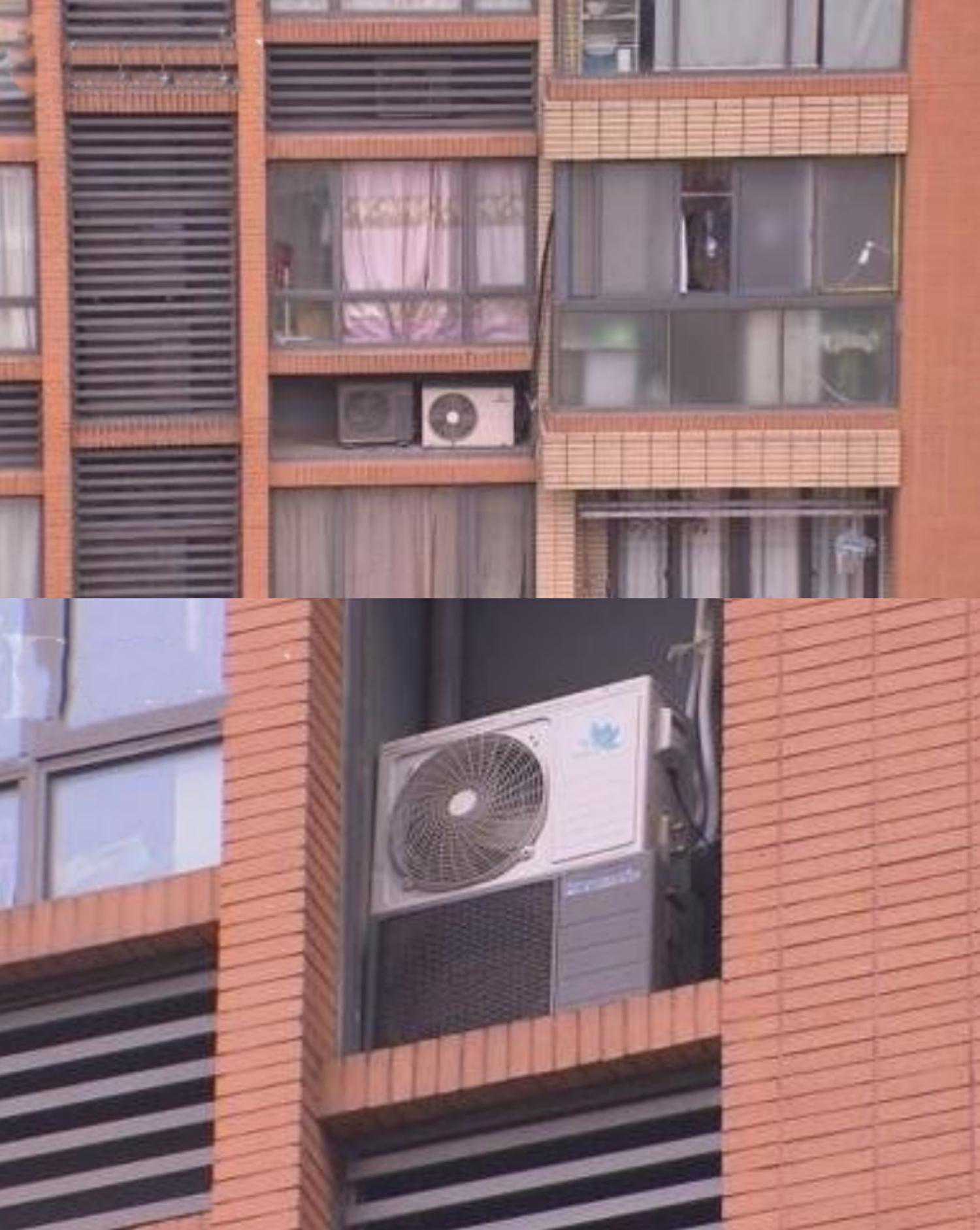 除了开发商预留的空调外机位奇葩外,下面这位业主在自家阳台上安装的空调外机位也是挺奇葩的,两台空调外机面对面安装,你吹我,我吹你。