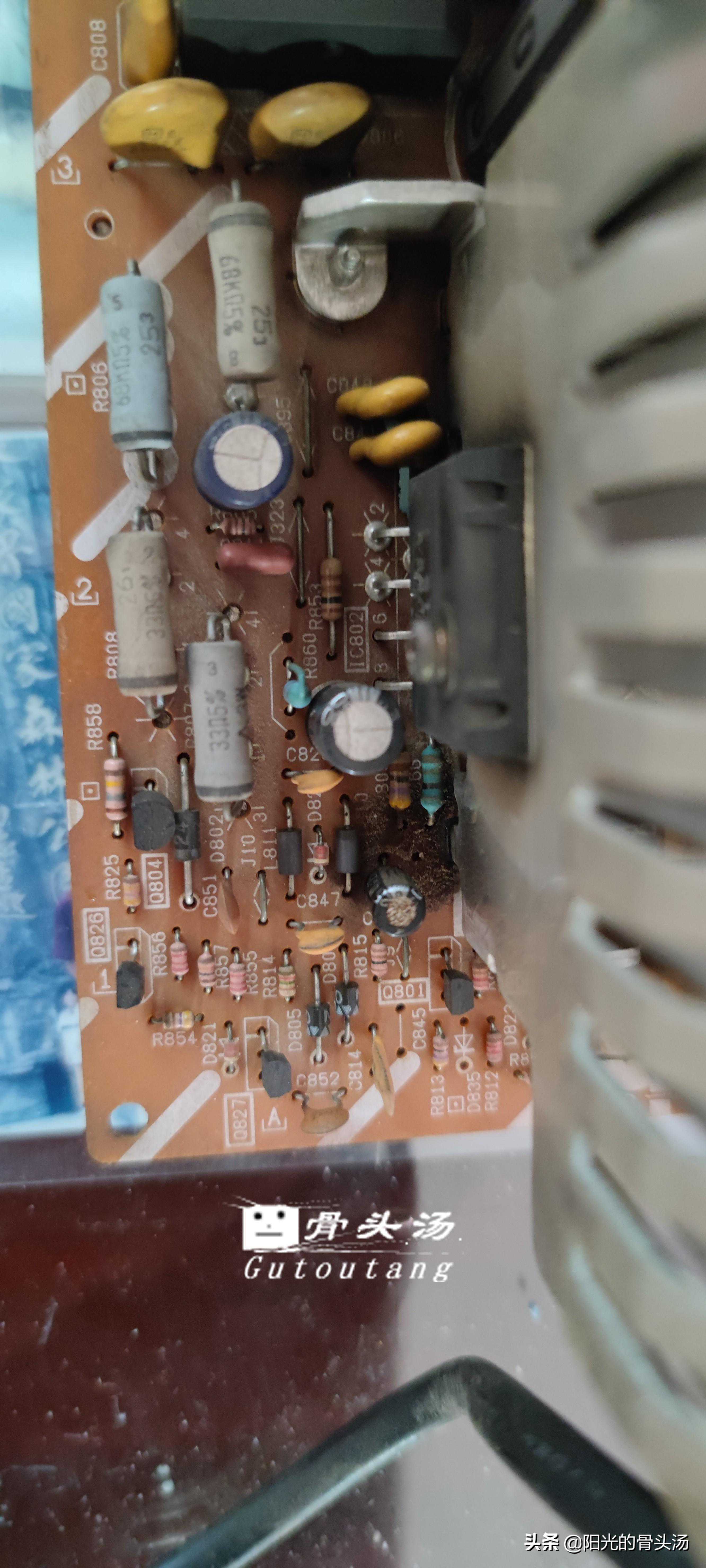 哈哈哈,前阵子收了台老电视,运回家的时候就会开机保护,前几天自己除了下灰尘,补焊了显像管座,看到c813漏了,没有代换,开机正常使用,以为故障解决了,又用了几天直接指示灯也不亮了。拆开看了一下目前发现......