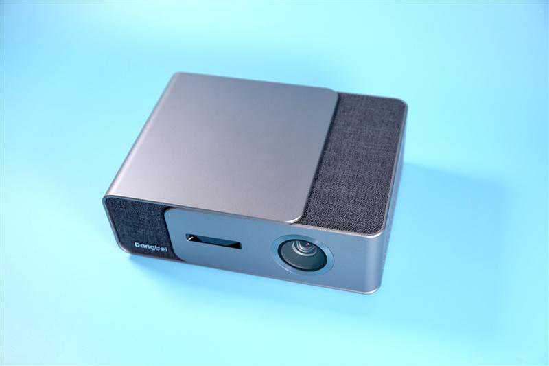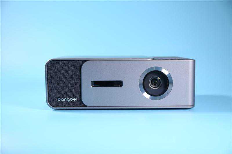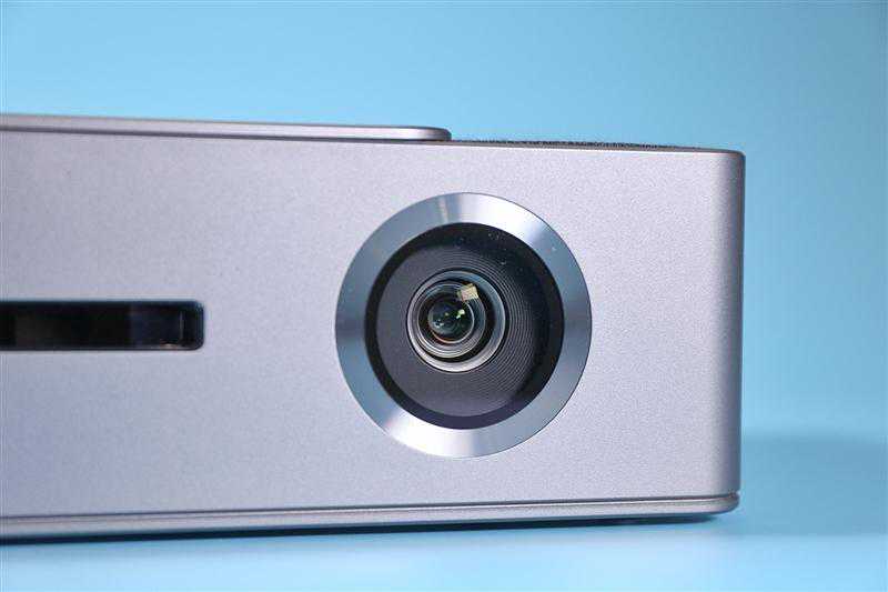 在当贝投影F1C的机身正面,我们可以看到一颗采取凹陷设计的光机大镜头,镜头保护片则是自带防刮花属性的蓝宝石。光机方面,当贝投影F1C所搭载的是0.33″DMD显示芯片,有1300ANSI流明,1.2:1的投射比令其最大可投300英寸巨幕。