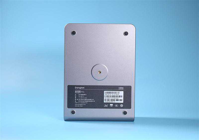 来看当贝投影F1C的底部,可以非常明显地看到四个边角上配有防滑脚垫,中间是司职支架安装的螺纹口。