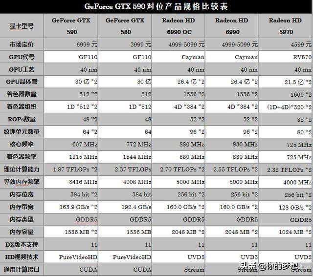 2011年03月24日,英伟达发布了第一块基于费米架构的双核旗舰产品GTX590,这是继2008年的GTX295后又一双核利器,期间AMD发布了HD5970,立于性能之巅;又发布了HD6990,刷新最高性能高高在上。而英伟达仅以费米架构的GTX480和GTX580作为最强单卡自居。