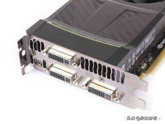 GTX590正面左侧,我们能够看到显卡配备了3个支持DVI接口,同时搭配一个MiniDp接口。这是英伟达第一次引入DisplayPort接口,同时摒弃MiniHDMI接口。同时值得一提的是,3个Dual-LinkDVI接口可以真正实现单卡英伟达3DSurround技术。