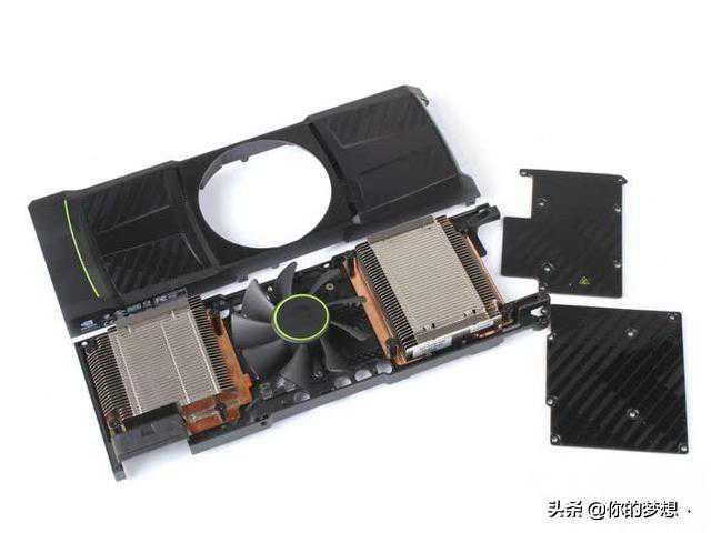 费米架构的GF100核心功耗让人堪忧,虽然经过一系列优化、改良后的GF110核心有大幅改善,但是双芯产品前提下,还是让人不容乐观。同时随高功耗同时带来的高温也是一个棘手问题,下面让我们看看GTX590公版散热器的组成。