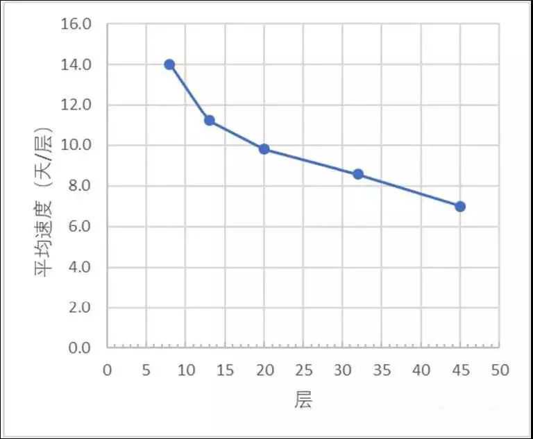 ▲日本框架结构超高层住宅(48+2层)施工速度统计