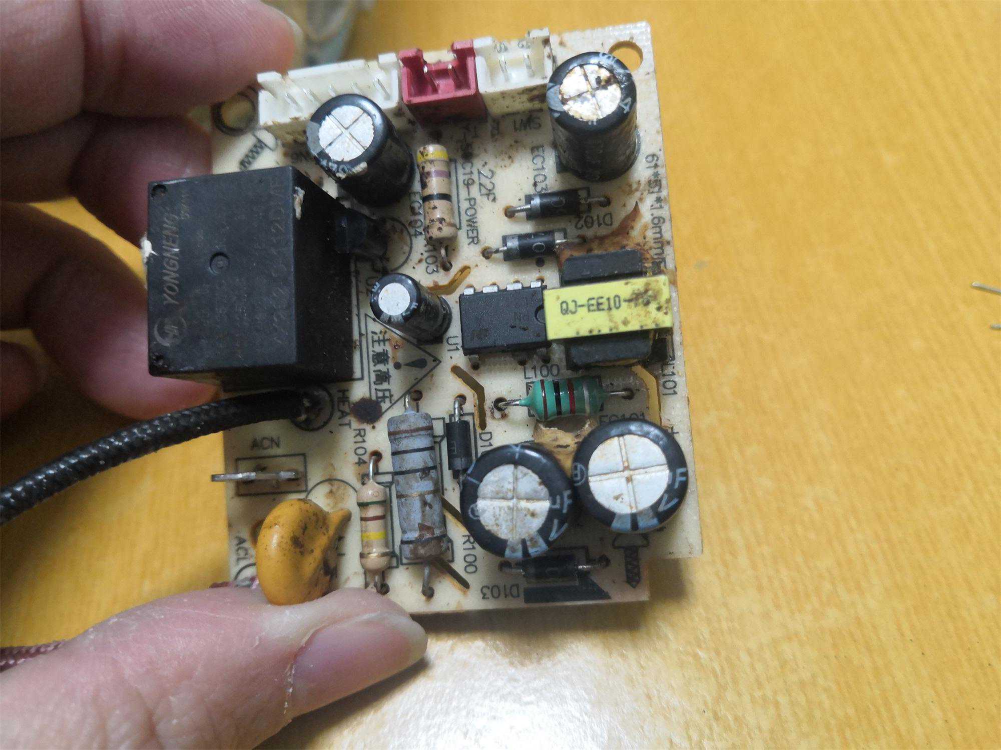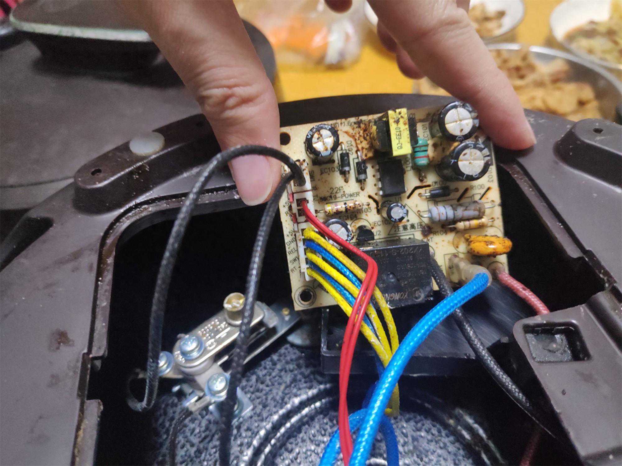 拆下电路板。其实在做这步之前,已经将锅内无法拆卸的元件都测过了,无异常。