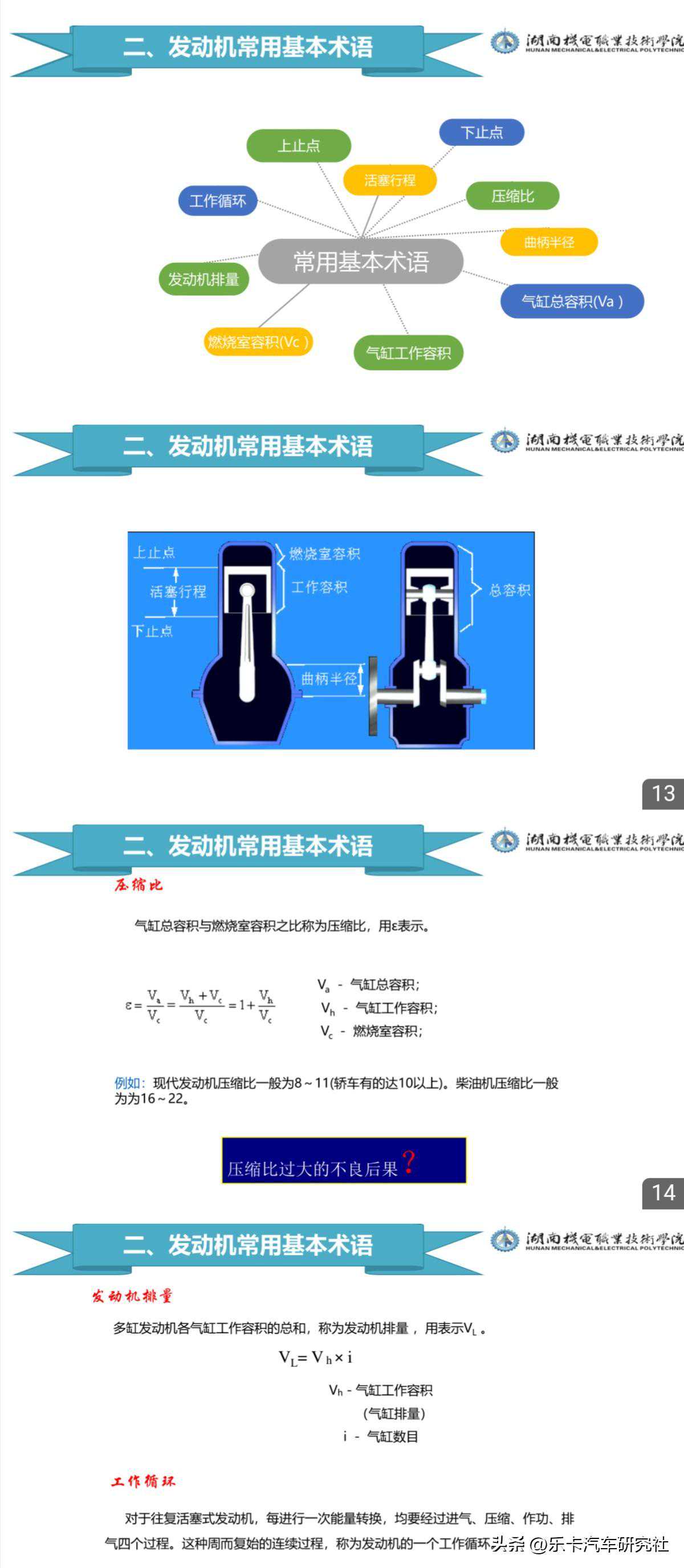 另外在维修发动机的时候,你就会听到很多专业术语,比如说汽车的排量,气缸的工作容积,上止点以及气缸压力等等,上面这张图片就能非常详细的介绍这些专有名词所指的意义。