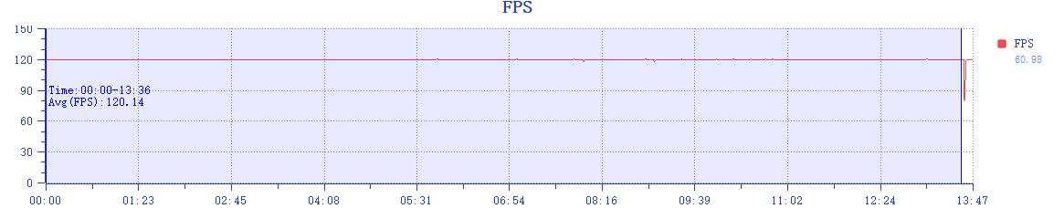 首先是《王者荣耀》,游戏进行时将各个画质选项都设为最高,然后进行一局大约13分钟的对战,游戏结束后,可以看到小米14Pro可以保持全程120fps,非常稳,体验过程中也没有卡顿掉帧的情况。
