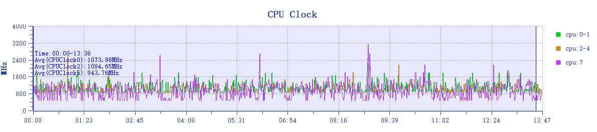 再看CPU核心调度情况,可以看到骁龙8Gen3各个核心的性能释放还是比较均衡的,八个核心齐发力,但整体都能维持在1GHz左右的水平,其中Cortex-X4超大核偶尔会飙升到3.2GHz然后迅速回落,这样的调度之下可以让整个芯片的功耗和发热控制在较好的水平。