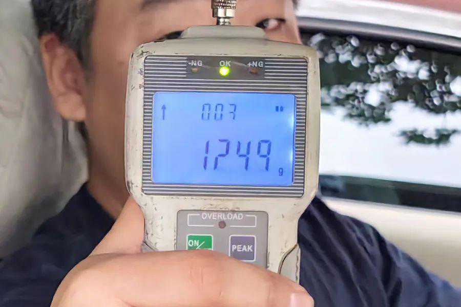 我们在同一路段(地面摩擦力相同),胎压调至厂家标准胎压,使用标准模式,用拉力计原地匀速旋转方向盘90度,取最大数值。