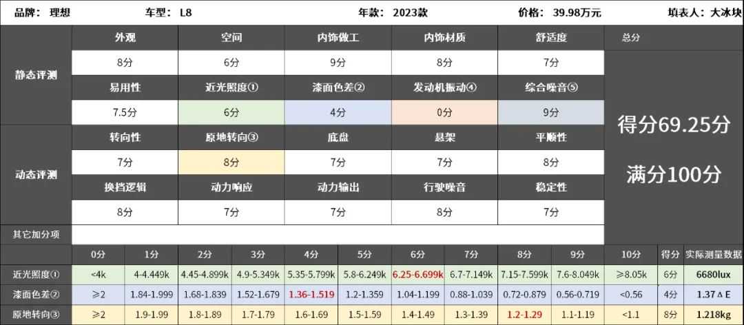 测试方法:使用色差计在引擎盖中央位置取基准数值。在车身其它位置进行对比测量,记录数值最大的位置。车身测试采样点不小于100个。