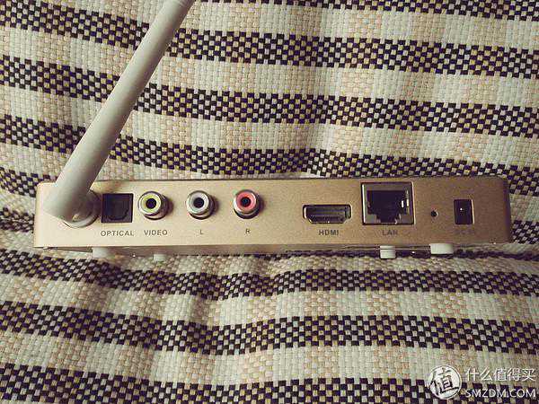 盒子表面做了磨砂处理,拿在手里比较有质感,不是那种轻飘飘的感觉,不过好像魔盒比它小但要比它重点,看看接口吧,一般家庭是绝对够用了,比较良心的是带了3色口,虽然现在没什么用,但同价位的机顶盒带这个的极少,这也是我选它的理由之一