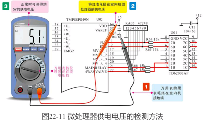 微处理器是变频空调器中的核心部件,若该部件损坏将直接导致变频空调器不工作、控制功能失常等故障。