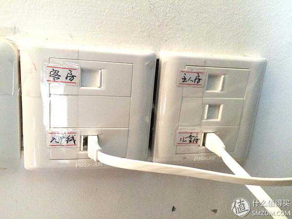 因为网线预留不到十厘米,所以只好上模块建议大家还是把线留长点,直接装水晶头,对线的损耗小点。可以看到右边中间多出一个模块,是装修公司最初从书房到弱电箱的网线,当年用ADSL上网时充当了电话线的角色。。。也算是因祸得福,毕竟书房没有留电话线