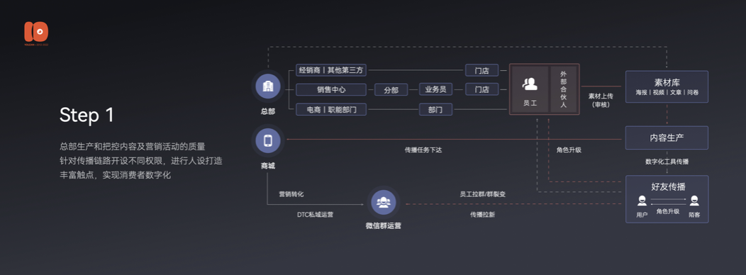 在具体落地上,总部-渠道-导购都要全部上线