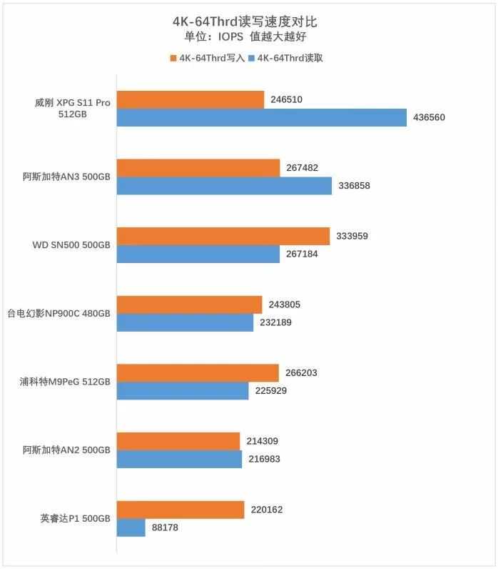要性能,阿斯加特AN3500GB和威刚XPGS11Pro512GB表现出色
