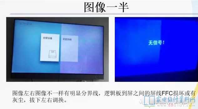 故障十九:50V5/50E6000等一侧竖带花屏图像暗