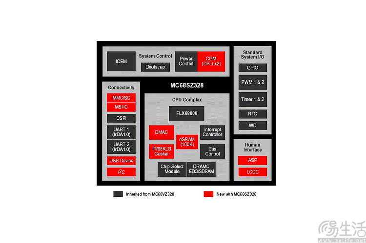 摩托罗拉龙珠SuperVZ的官方架构图(红色为其相比前代产品的增加部分)
