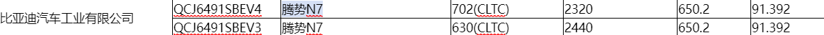 腾势N7续航信息曝光,CLTC工况下最高可达702km