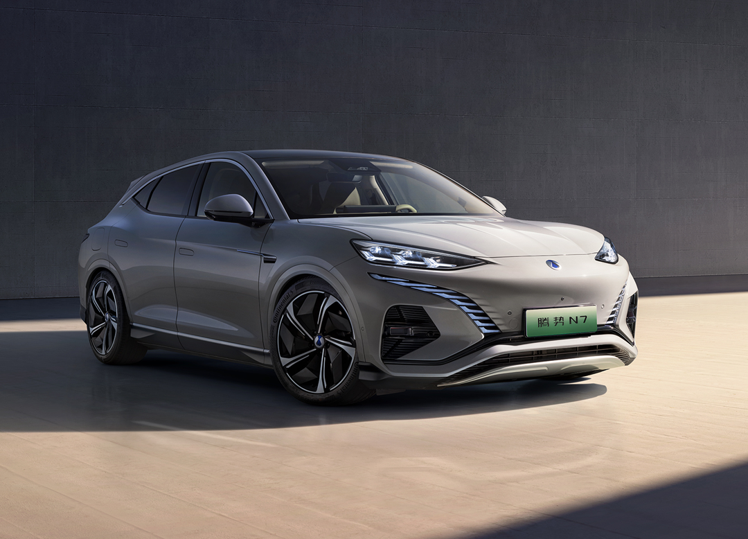 腾势N7是腾势品牌推出的一款猎跑SUV,在外观设计上融合了猎装车、轿跑、SUV三者的形态,采用了封闭式前脸,并配备隐藏式门把手、贯穿式尾灯、大尺寸轮毂。申报信息显示,腾势N7长宽高分别为4860/1935/1602毫米,轴距为2940毫米,最高车速180km/h,可选装激光雷达。