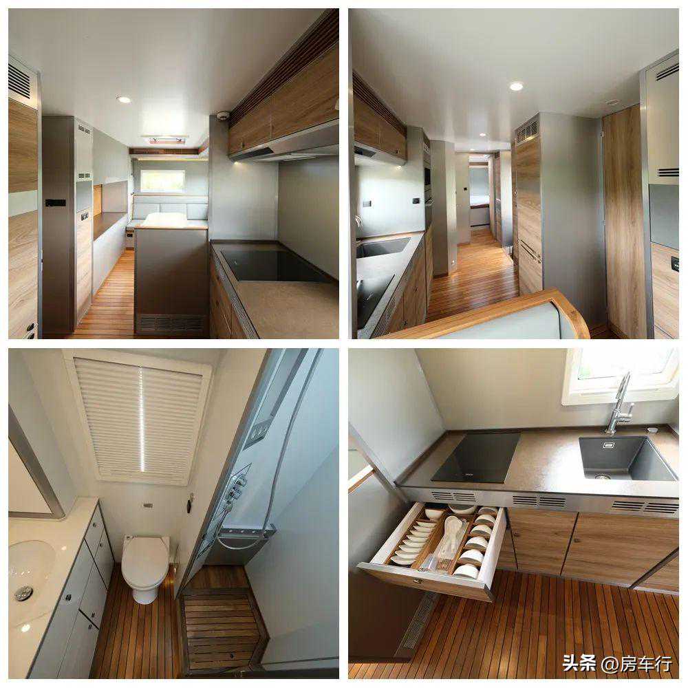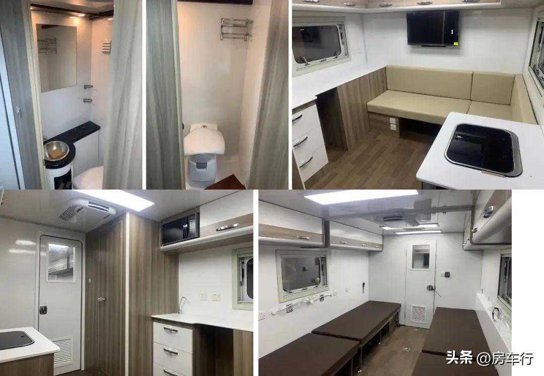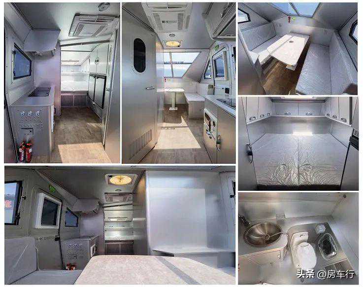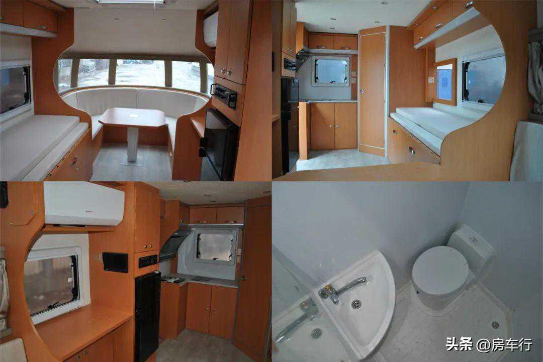 1、该车型配备厨具、睡具、桌柜、卫生间等旅居生活专用装置;2、该车侧面及后面为裙边结构,侧裙边离地高360mm,后裙边离地高450mm;3、选装无遮阳棚,对应宽度2370mm,选装无顶置空调,对应宽度3270mm;4、选装内部装修风格及布局,该车左侧和后侧车厢可选装无拓展机构。
