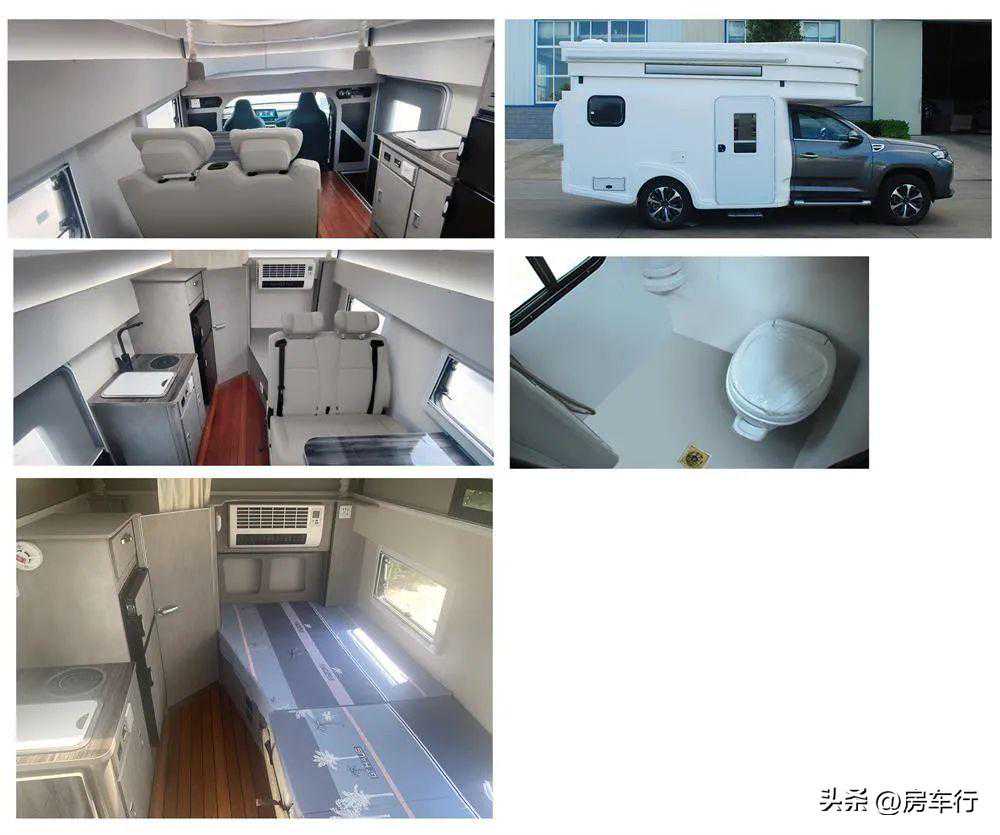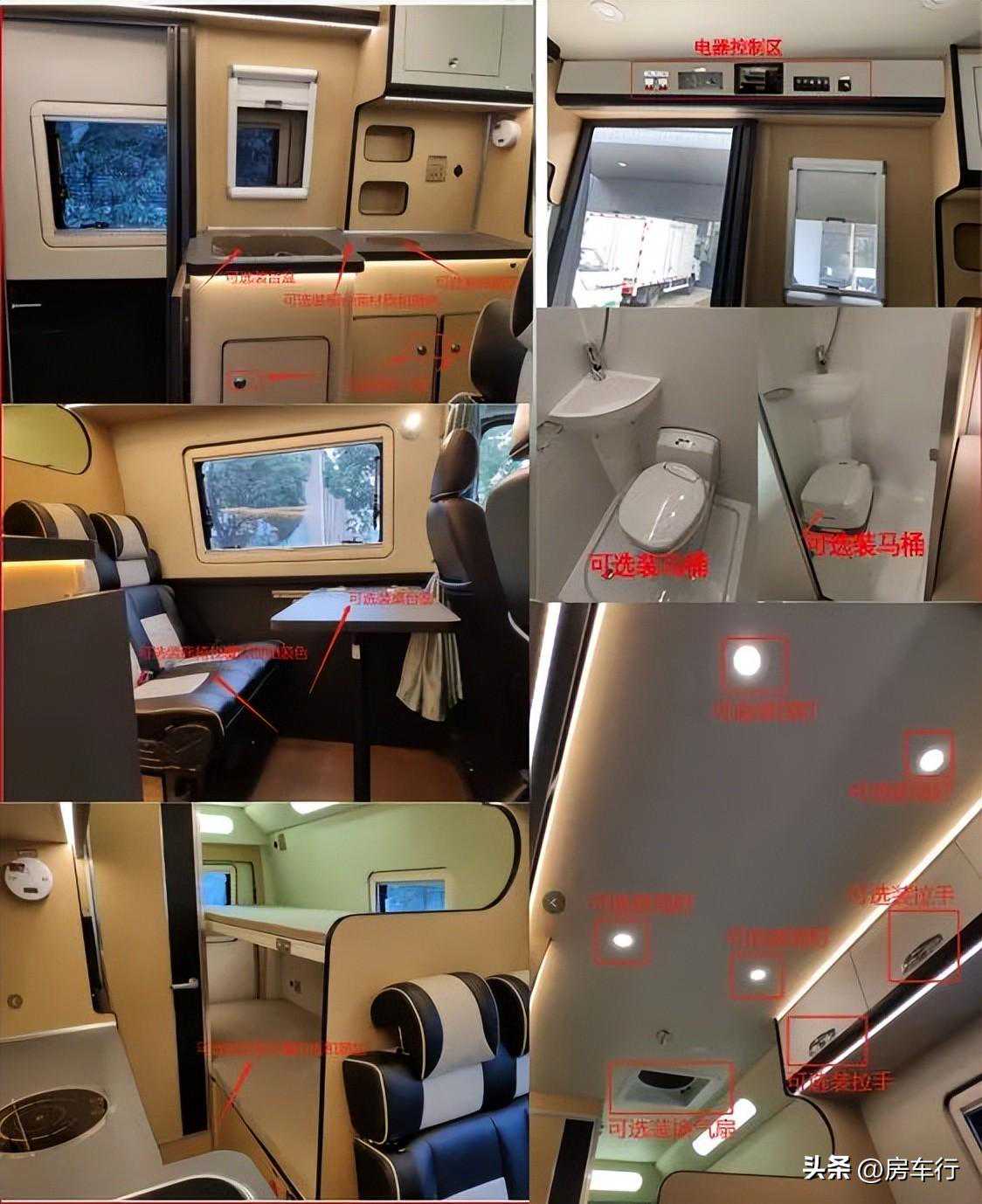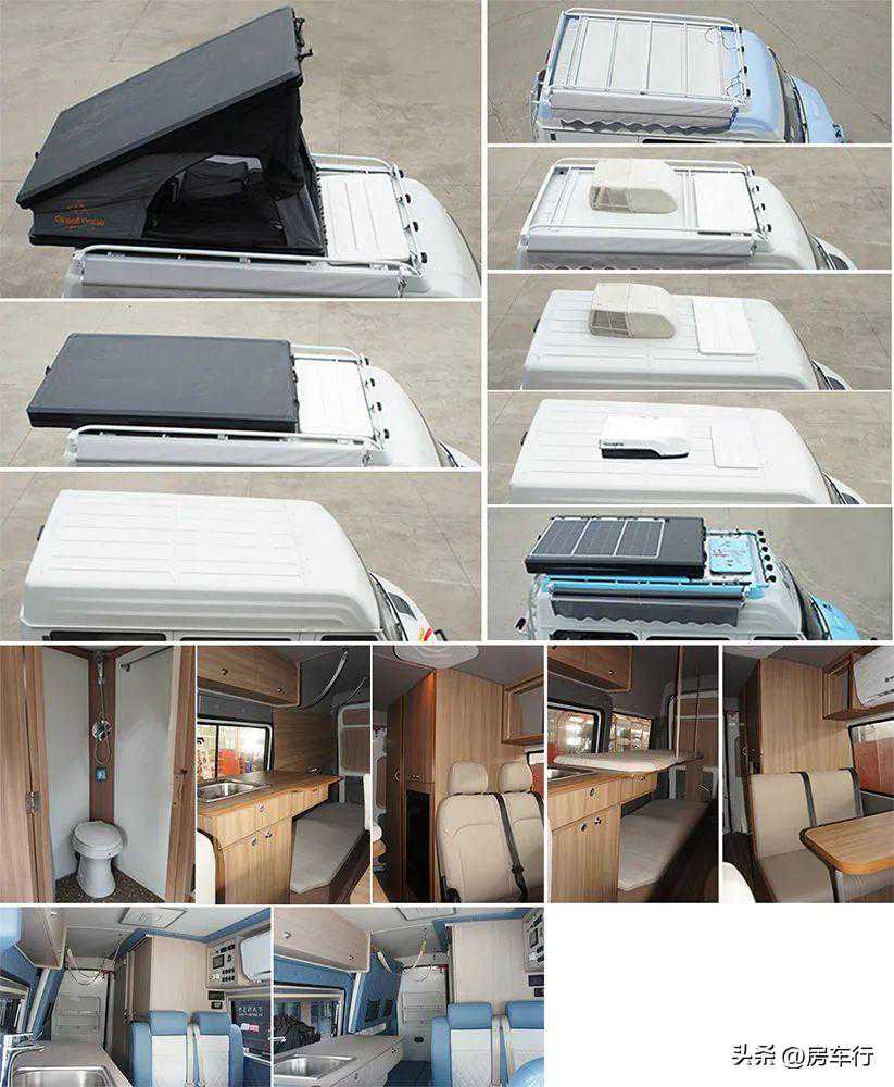 1、该车配冰箱,马桶,遮阳棚等专用装置;2、侧面选装logo标志、窗户、散热口、市电口、外置淋浴、照明灯、遮阳棚;车顶选装太阳能板、换气扇;后部选装摄像头、窗户;3、该车侧后防护为裙板结构,侧防护离地高度为430mm,后防护离地高度为360mm。