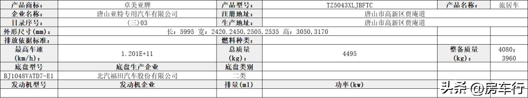 2022年8月10日,国家工业和信息化部在官方网站公示了360批关于《道路机动车辆生产企业及产品公告》(以下简称《公告》)新产品,共有41家房车企业申报49款车型,包括38款自行式房车和11款拖挂式房车。此次公告除了之前提到的万山牌越野旅居车型外,隆翠、霞客乐、阿莫迪罗、法美瑞、卓美亚、大驰等知名房车企业都申报了新款车型,其中还有不少特色车型。