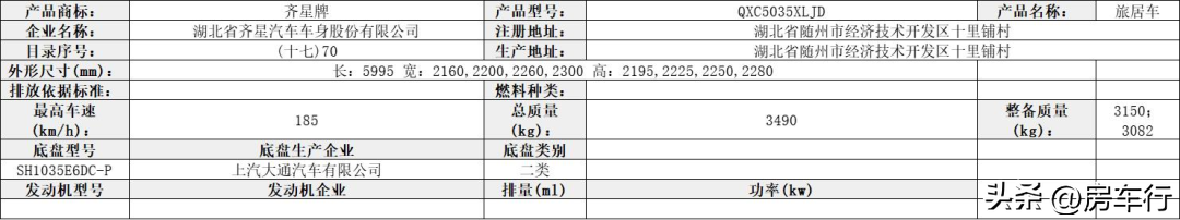 专用装置及功能:车内设有桌椅、睡具、炊具、卫生设施及照明和空气调节等设施,用于旅行宿营;.ABS型号:ABS9,ESP9;发动机最大净功率:108.5kW‘’前悬架型式为:麦弗逊独立悬架;可选装直接供电式ETC装置。
