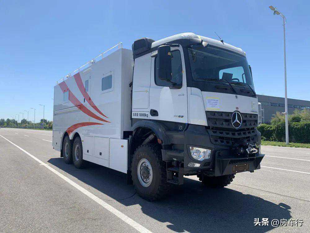 该车型配备厨具、卧具、卫生设施、供排水设施、电气设施等旅居生活设施和娱乐设施等专用装置,用于旅居宿营.车身两侧选装凸出式盲窗(车宽2095mm),该车侧后防护为裙板结构,侧防护离地高度为310mm,后防护离地高度为370mm。