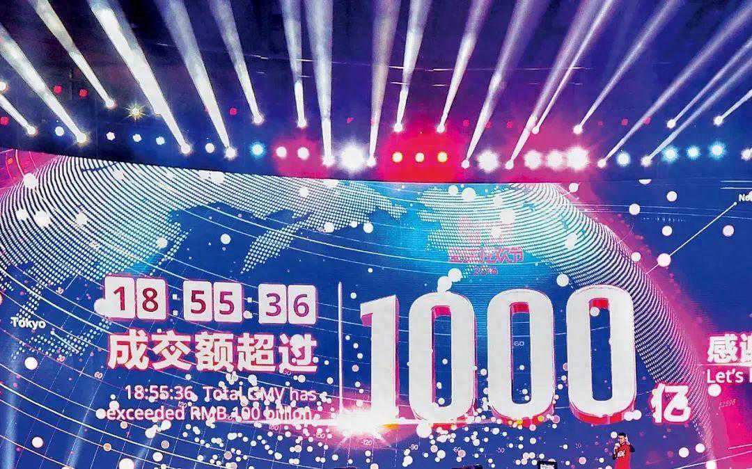 2016年11月11日18时55分36秒,2016年天猫双十一成交额超过1000亿元。本文图/视觉中国