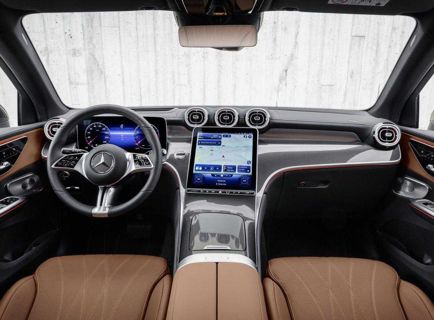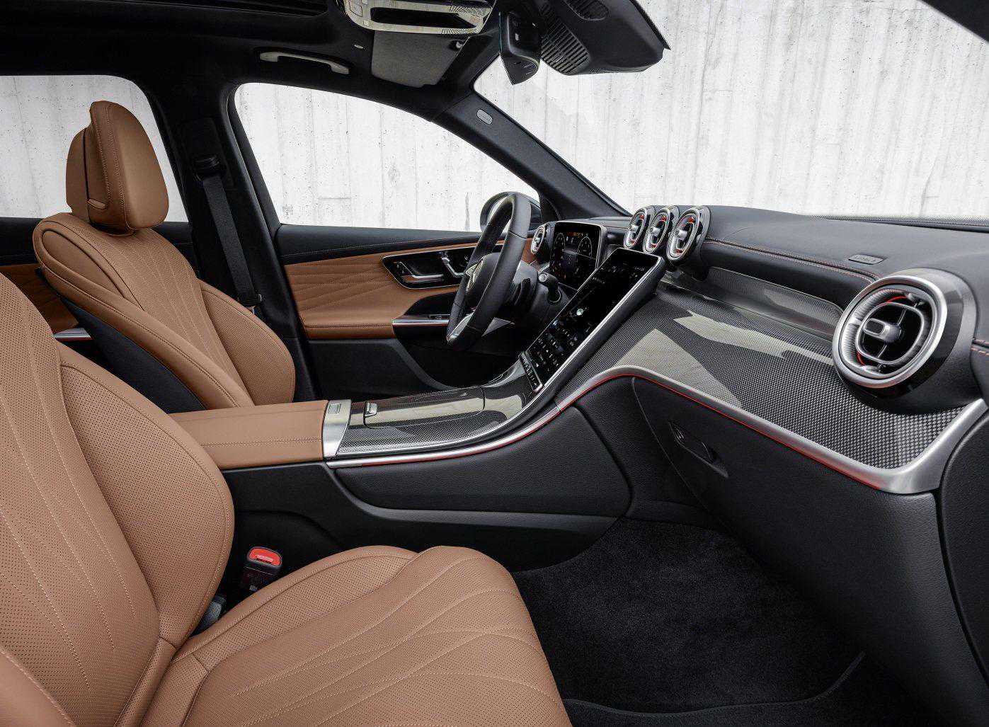 内饰是全新一代奔驰GLC最大升级之处,新车采用了新款奔驰C级的设计语言,配备了11.9英寸的竖向中控屏以及12.3英寸全液晶仪表盘,同时方向盘样式也进行了调整,使得整个车厢尽显科技感与豪华感。